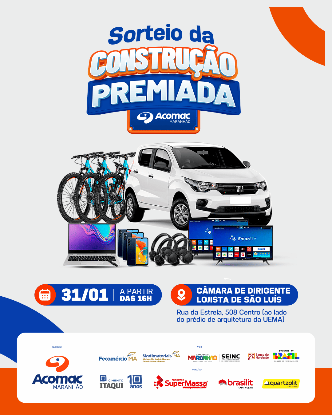 A Construção Premiada é uma promoção anual da ACOMAC que conta com forte adesão das lojas e consumidores, movimentando o calendário comercial e promovendo incentivo ao consumo no setor de materiais de construção (MATCON) no Maranhão. A cada edição, a iniciativa contribui para aquecer o varejo, estimular vendas e aproximar o consumidor das lojas participantes.